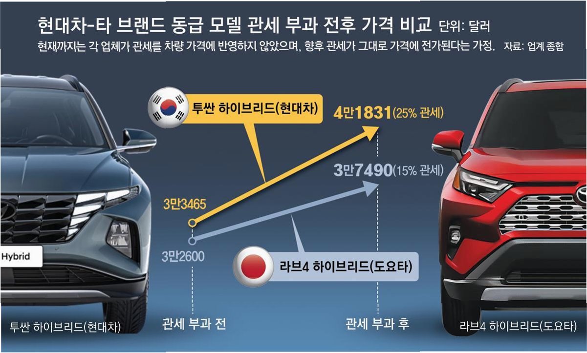 미국이 일본 자동차에 대한 관세를 인하하면서, 한국 자동차 가격 경쟁력에 대한 우려가 커지고 있습니다. 기존 27.5%였던 일본 자동차 관세가 15%로 낮아지면서, 한일 자동차 가격 역전 우려가 현실화되는 상황입니다. 이는 곧, 쏘나타가 경쟁 모델인 캠리보다 비싸지는 상황을 초래할 수 있다는 의미입니다. 이러한 상황은 국내 자동차 시장에 큰 파장을 일으킬 수 있으며, 정부의 적극적인 대응이 요구됩니다.