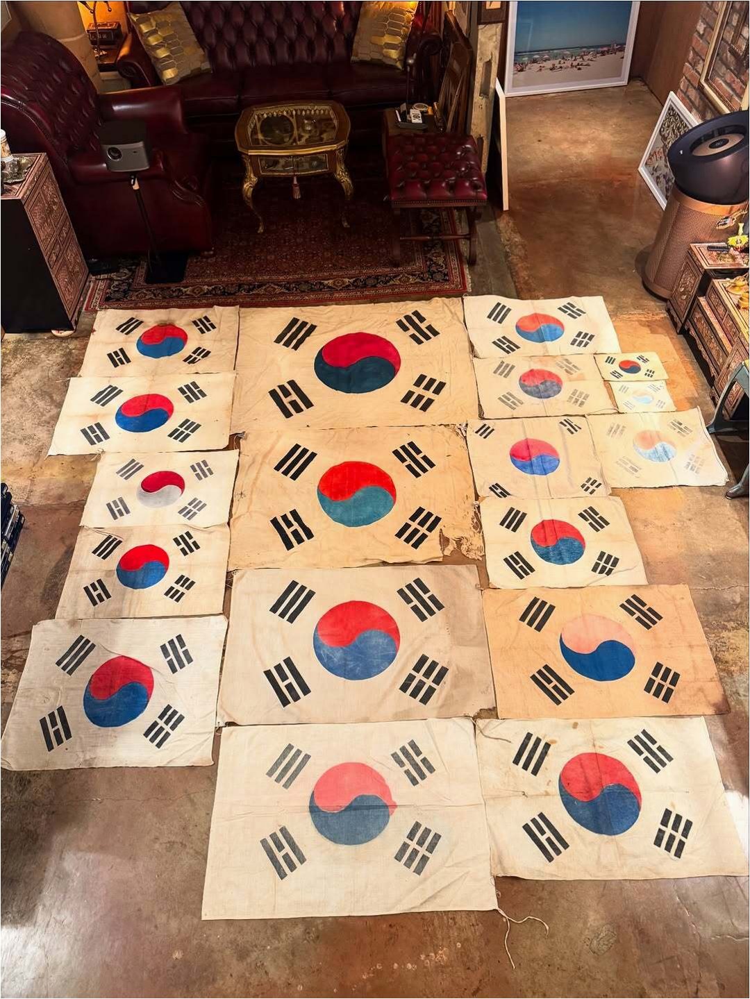 배정남이 공개한 태극기들은 1950년대에 제작된 것으로, 오랜 시간의 흐름을 고스란히 간직하고 있습니다. 빛이 바랜 모습, 낡아 헤진 자국들은 그 시간의 무게를 느끼게 하며, 보는 이들에게 묘한 감동을 선사합니다. 태극기의 크기와 모양 또한 다양하며, 각기 다른 사연을 품고 있는 듯합니다. 이러한 태극기들은 단순한 수집품을 넘어, 대한민국 독립을 위해 헌신한 이들의 숭고한 정신을 기리는 소중한 유산으로서의 가치를 지닙니다.