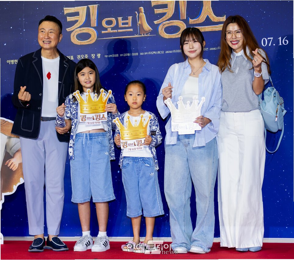 가수 겸 프로듀서 주영훈과 배우 이윤미 가족이 영화 ‘킹 오브 킹스’ VIP 시사회 레드카펫을 밟았다. 오랜만에 공식석상에 함께 나선 이들 가족은 단란한 분위기로 현장을 따뜻하게 물들였다. 네 식구가 손을 맞잡고 선 레드카펫 위엔 웃음이 끊이질 않았다.
