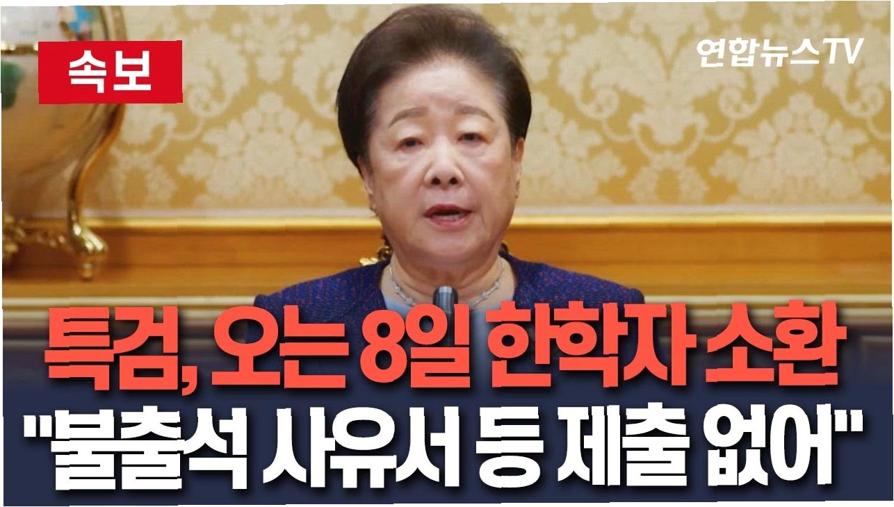 한학자는 김건희 여사 관련 특검 소환에 불응하며 불출석사유서를 제출했습니다. 심장 시술 후 회복 중인 건강 상태를 이유로 소환 일정 연기를 요청했으며, 특검은 이에 대한 대응 방안을 모색 중입니다. 향후 조사 방식에 대한 귀추가 주목됩니다.