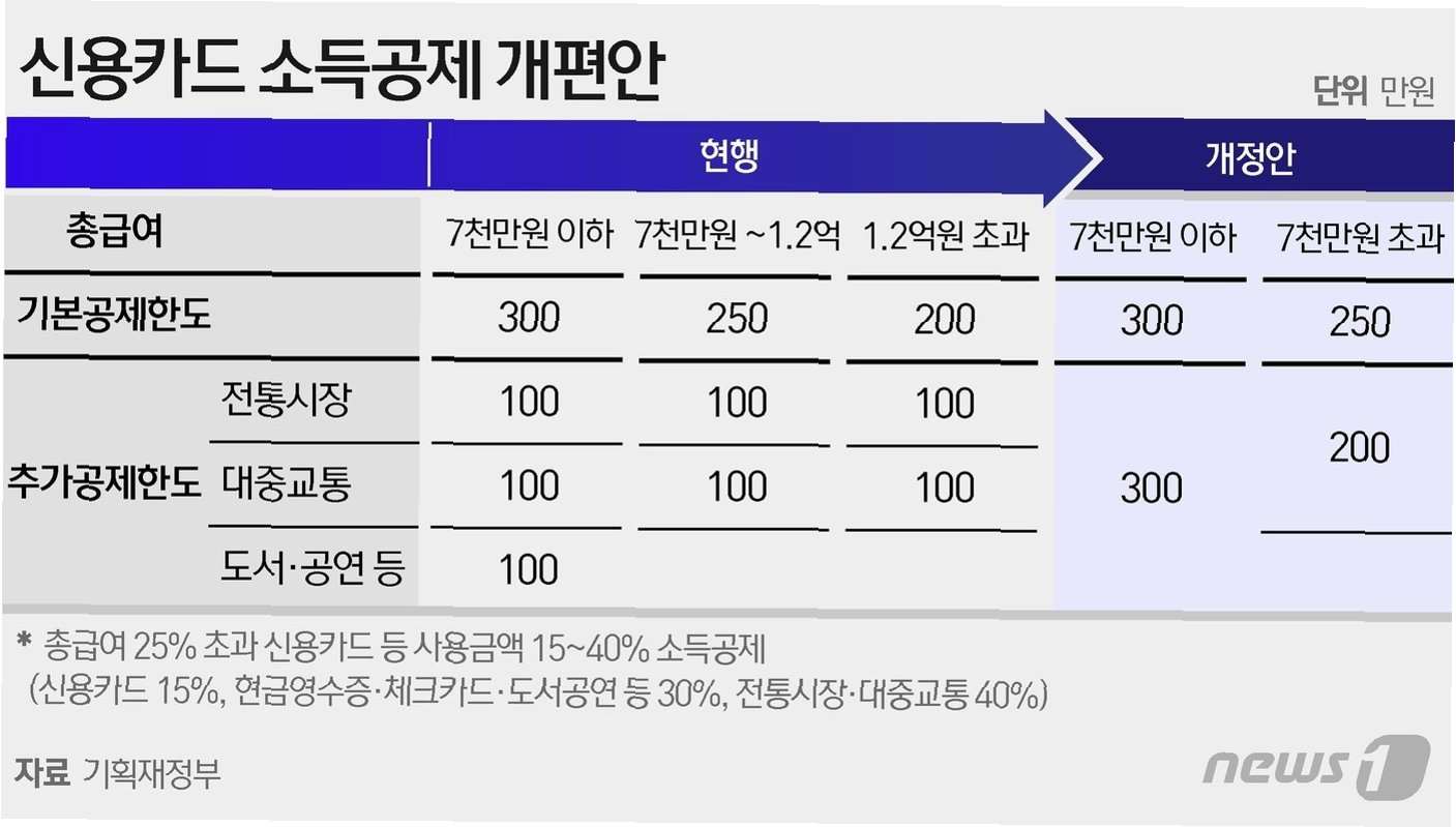 내년부터 신용카드 소득공제 한도가 자녀 수에 따라 차등 적용됩니다. 1자녀 가구는 350만원, 2자녀 이상 가구는 400만원까지 소득공제를 받을 수 있게 되어, 자녀가 있는 가구의 경제적 부담을 완화할 것으로 기대됩니다. 연봉 7000만원 초과 시에도 혜택이 주어집니다.