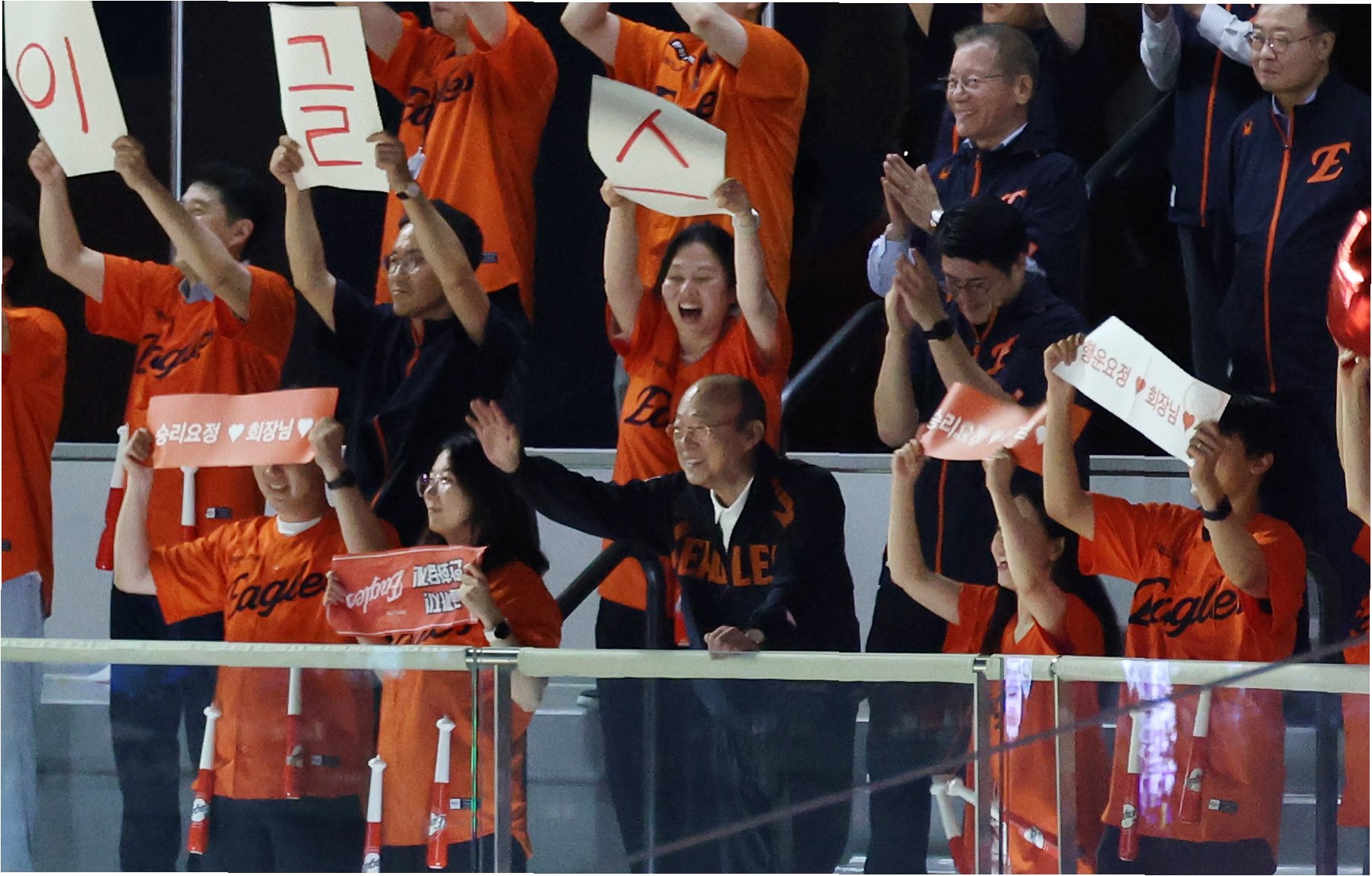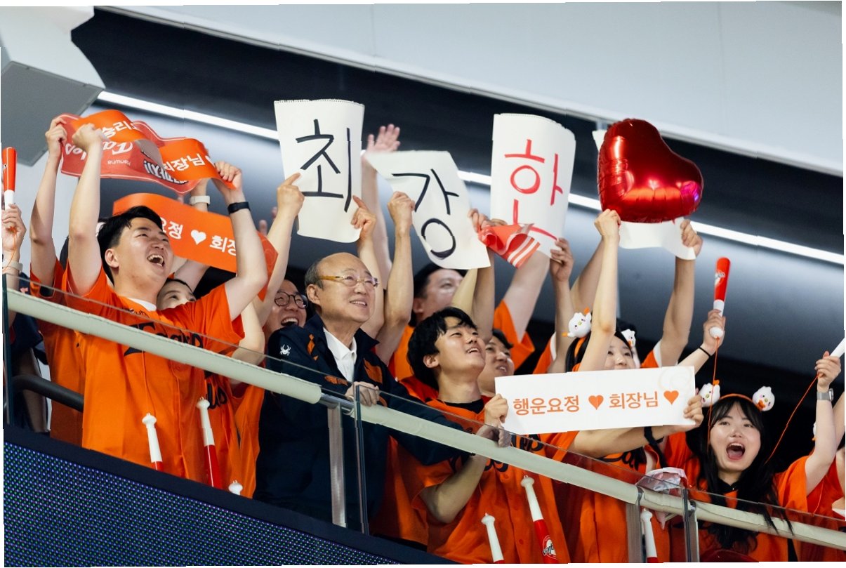 승리의 현장에 함께, 김 회장의 열정적인 응원