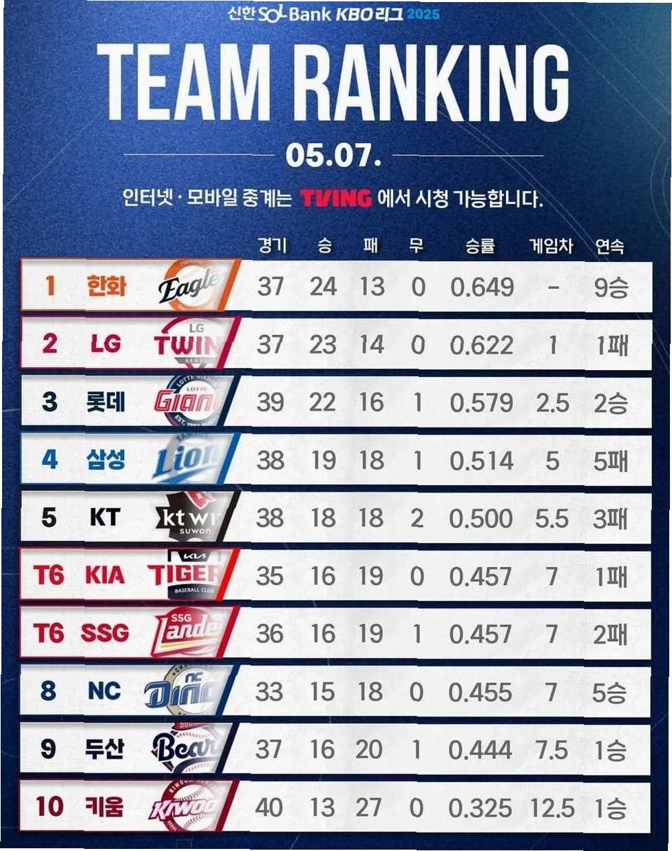 33년 만의 쾌거, 한화 이글스, 전반기 1위 달성!