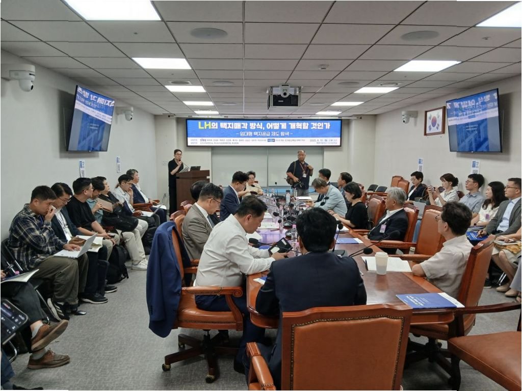 한국토지주택공사(LH)의 택지 매각 방식을 근본적으로 바꾸고, '임대형 택지공급'으로 전환해야 한다는 주장이 국회 토론회에서 제기됐다. 민간에 개발이익을 넘겨주고 고분양가·가계부채를 키운 현행 구조를 해소하려면 이제는 "토지를 팔지 말고 빌려주는 방식"으로 패러다임을 전환해야 한다는 것이다. 18일 국회 의원회관에서 열린 'LH의 택지매각 방식, 어떻게 개혁할 것인가' 정책토론회는 더불어민주당·조국혁신당·기본소득당 소속 의원들이 공동 주최했으며 토지+자유연구소, 하나누리 동북아연구원이 공동 주관했다. 추미애 법사위원장 내정자, 진성준 정책위의장, 박주민 복지위원장, 복기왕 국토위 간사 등 민주당 주요 인사들도 주최자로 이름을 올리며 무게감을 더했다. 이 토론회는 LH 택지 매각에 의문을 제기한 이재명 대통령의 문제의식을 제도 개혁 논의로 끌어올린 자리였다.