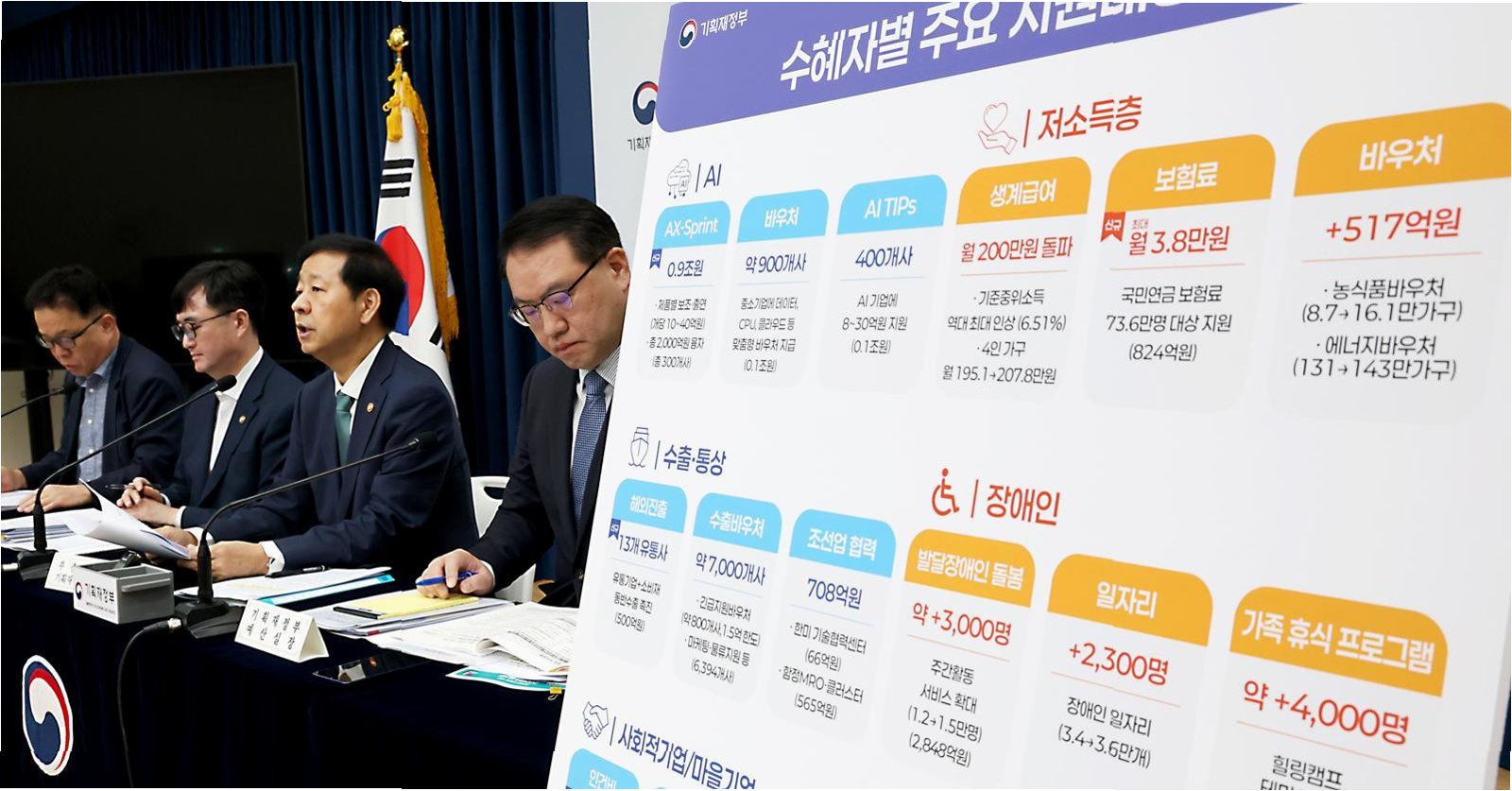 A.중소기업 근로자 식비 지원, 초등학생 과일 간식 지원, 농산물 바우처 확대, 수입 안정 보험 및 직불금 확대 등 다양한 지원 사업이 함께 추진됩니다.